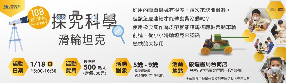 使用橡皮筋作為皮帶就能讓馬達轉軸帶動車輪前進,從小小滑輪坦克來認識機械的大妙用。