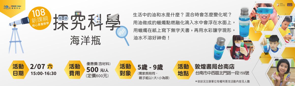 活動對象(建議年齡):5~9歲(8歲以下小朋友建議一位家長陪同)