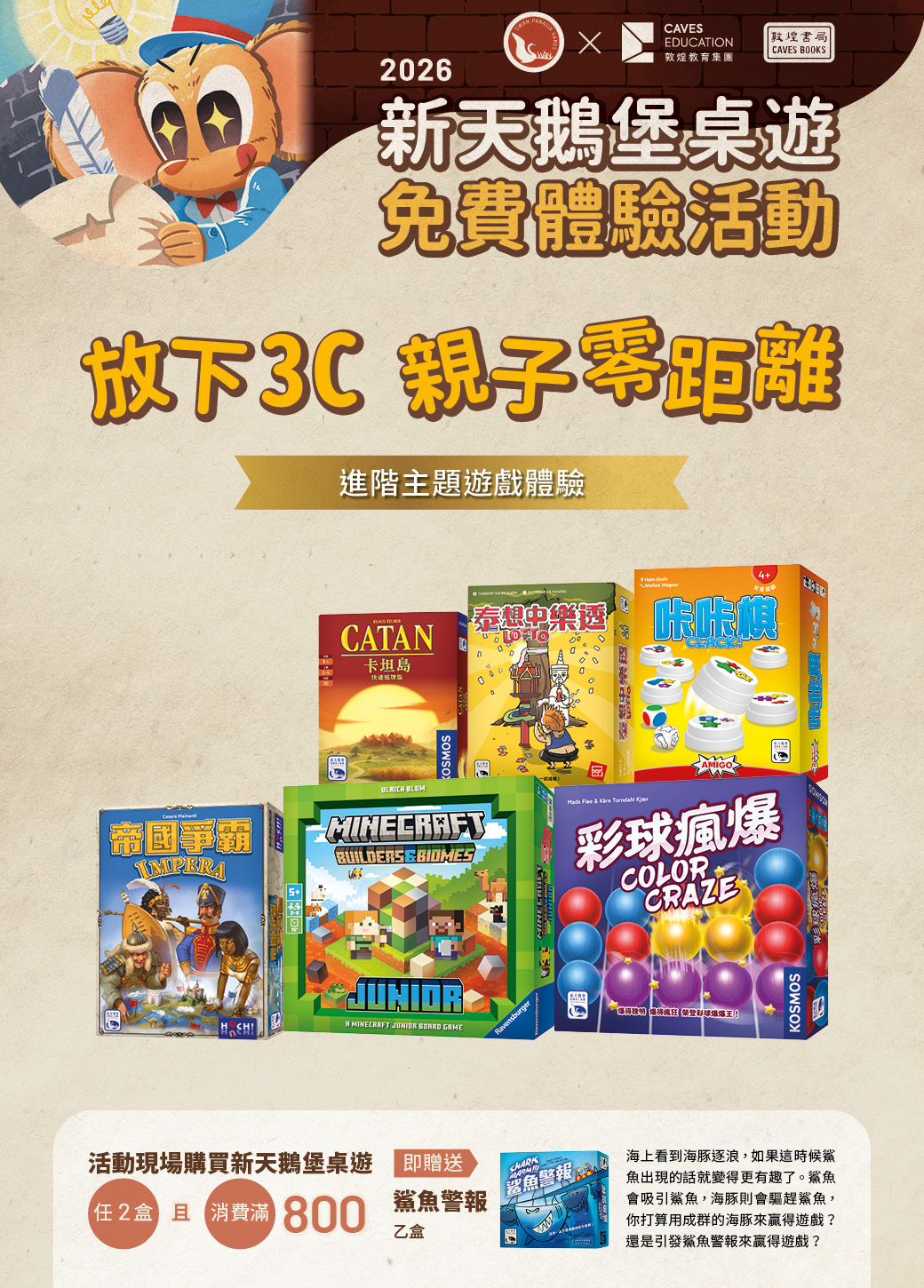 活動方式:依老師教學狀況及報到順序依序入座體驗,視當天體驗桌遊,可能會多組參加者一起體驗同款桌遊。
