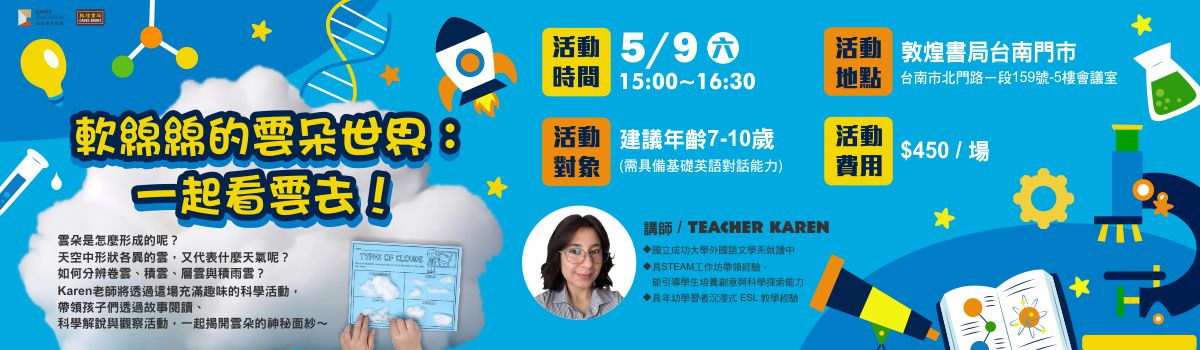 帶領孩子們透過故事閱讀、科學解說與觀察活動,一起揭開雲朵的神秘面紗~