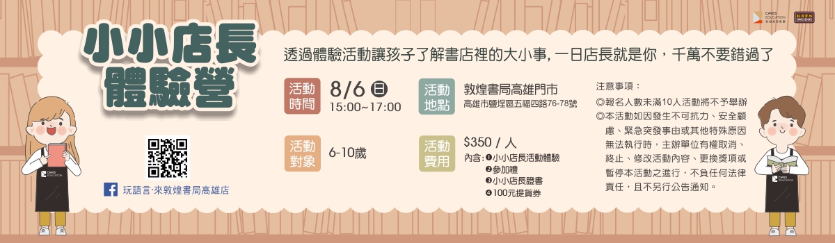 內容: 透過體驗活動讓孩子了解書店裡的大小事,一日店長就是你,千萬不要錯過了