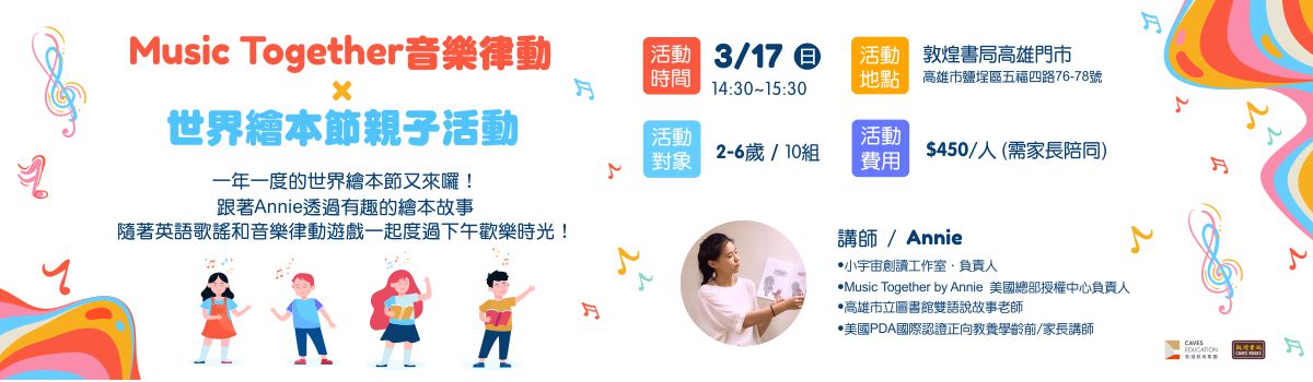 跟著Annie透過有趣的繪本故事 隨著英語歌謠和音樂律動遊戲 一起度過下午歡樂時光!