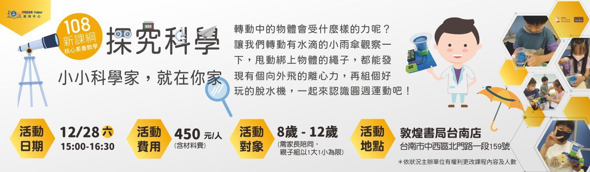讓我們轉動帶有水滴💧的小雨傘觀察一下,當你每次甩動綁上物體的繩子時,都能發現有個向外飛的離心力,很神奇吧!